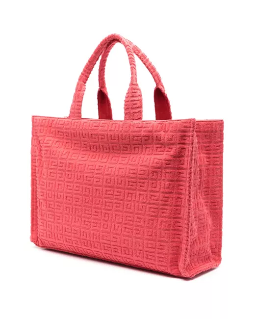 coral pink cotton blend towelling finish signature 4G motif two rolled top handles chenille logo patch main compartment internal patch pocket internal logo patch full lining open top This piece comes complete with a protective dust bag.
