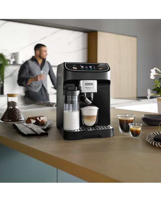 Simplify your morning routine with the Magnifica Plus coffee machine from De'Longhi. The full touch colour display lets you quickly choose from 15 hot and cold beverages, and offers full personalisation of your favourite drinks with up to four user profiles. And with the Italian label's LatteCrema Hot technology, you can customise your coffee even further through dense, creamy or light milk foam textures.