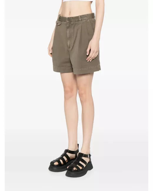 olive green Supima cotton-cotton blend pleat detailing front flap pocket two side slash pockets rear welt pocket belt loops front button and zip fastening straight hem