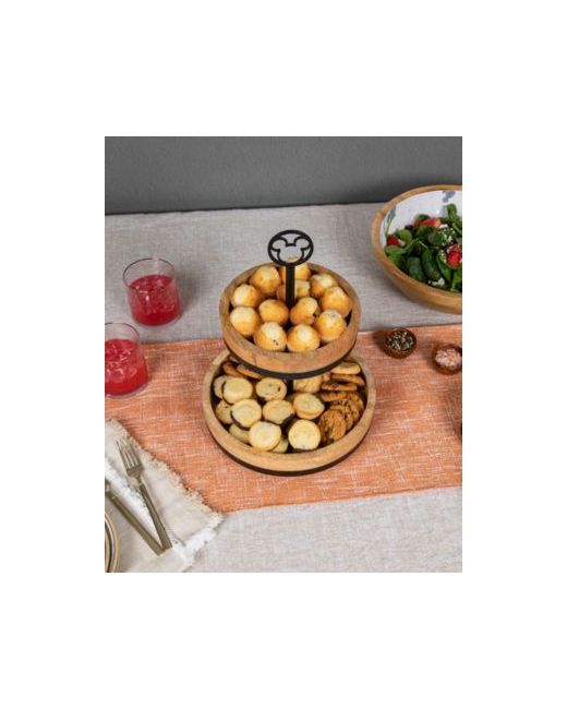 When you've got delightful desserts, scrumptious cheese, and fabulous charcuterie to display, look to the mickey mouse two-tiered serving tray to rise above other boards and platters. In beautiful and durable mango wood with iron accent bands and tasteful mickey head icon, this is one of our most stylish Disney designs to date. Storage between soirees and cocktail parties is easy thanks to the clever, collapsible design. Consider this lovely addition to your own Disney collection and home decor, or for a holiday, birthday, or housewarming gift for your favorite Disney fan.