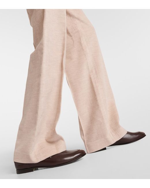 Material: 55% viscose, 45% cotton. Care instructions: dry clean. Made in Italy. Designer color name: Deserto. Lining: 65% acetate, 35% polyester. Closure: zipper fly, button and hook fastenings. Pockets: side slit pockets, back pockets. Belt loops.
