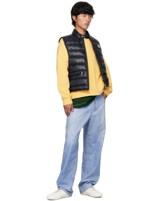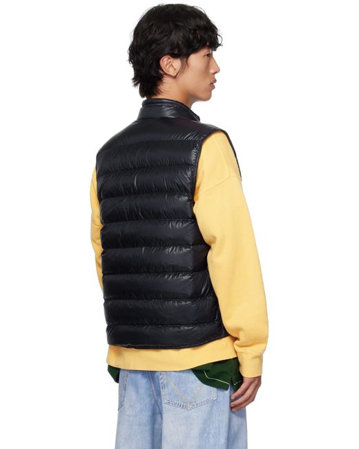 Packable DIST-certified down-filled quilted lightweight nylon longue saison vest. · Press-stud fastening at band collar · Two-way zip closure · Felted logo patch at chest · Zip pockets · Full quilted satin lining Supplier color: Obsidian blue Fill: 90% goose down, 10% feather.