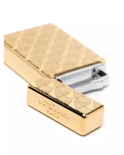 gold-tone polished finish engraved detail engraved logo hinged lid double yellow flame gas refill sold separately Please refer to the Size & Fit tab to learn more about this item's dimensions.