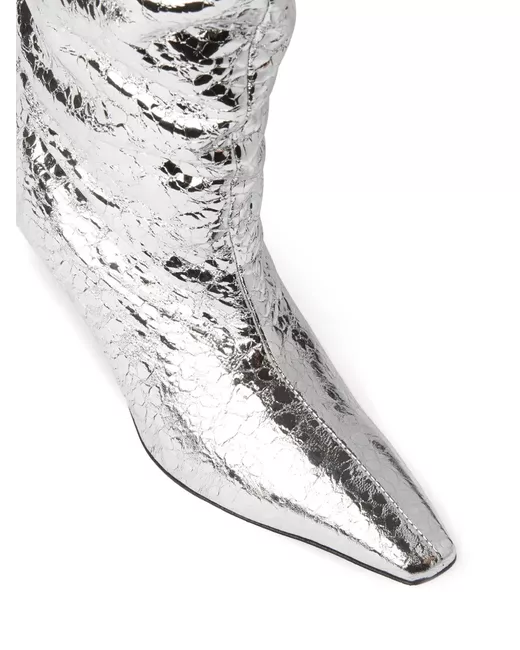 silver-tone calf leather foiled finish crinkled finish ruched detailing pointed toe slip-on style kitten heel leather sole