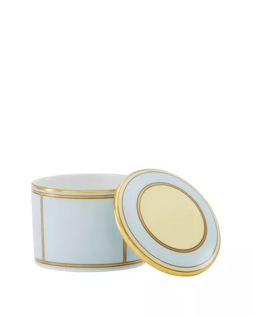 light blue/light yellow/gold-tone porcelain geometric panelled design 245ml
