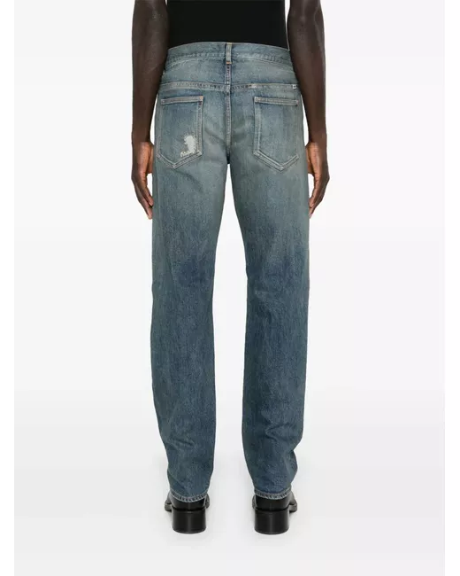 blue cotton blend denim stonewashed distressed effect contrast stitching belt loops silver-tone logo plaque two rounded pockets to the sides signature 4G motif straight leg concealed front button, hook and zip fastening