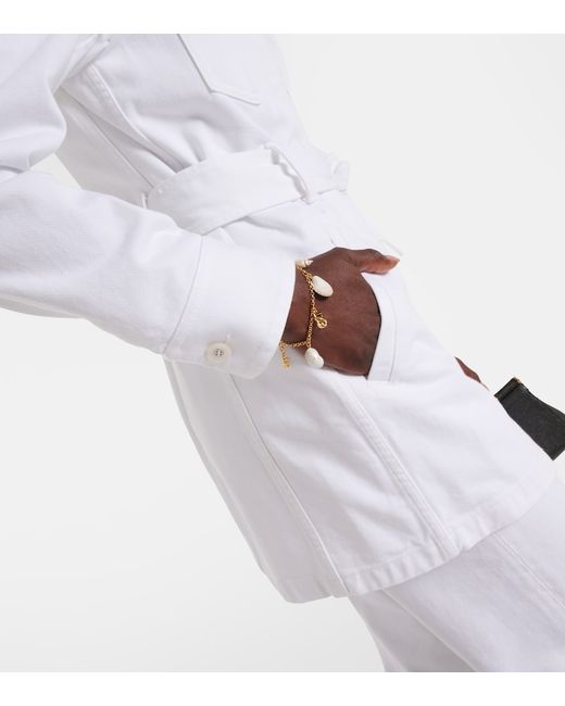Material: 100% cotton. Care instructions: machine wash at 30 degrees. Made in Italy. Designer color name: Variante Abbinata. Closure: buttoned front, belted waist. Pockets: flap chest pockets, slit pockets, welt pockets. Self-tie belt. Detachable belt.