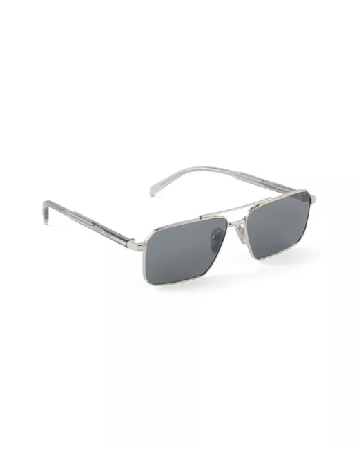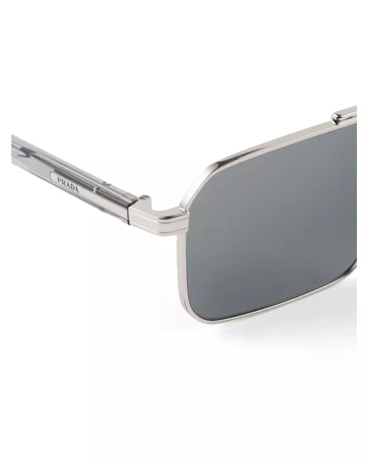 silver-tone metal rectangle frame double bridge nose pads tinted lenses UV-protective lenses logo-engraved arm curved tips These glasses come with a protective case.