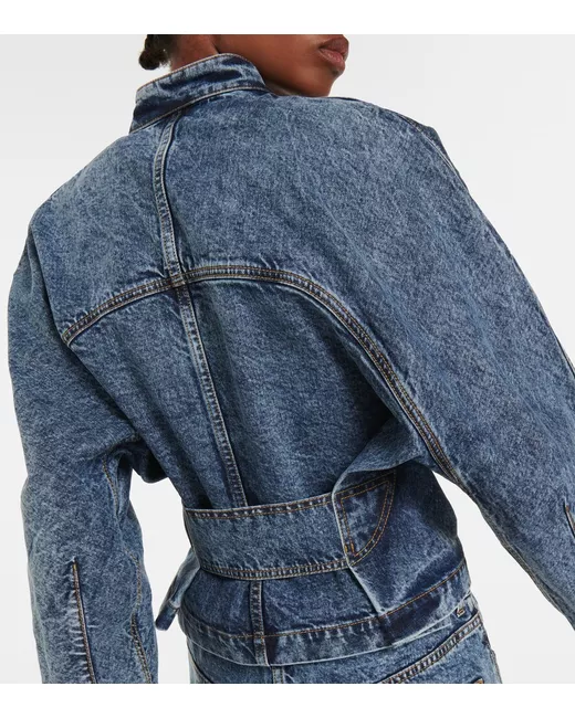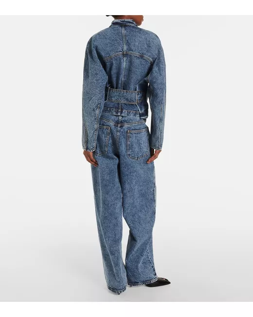Material: 99% cotton, 1% polyurethane. Care instructions: dry clean. Made in Italy. Designer color name: Bleu Neige. Closure: zipped front. Pockets: side slit pockets, welt pockets.