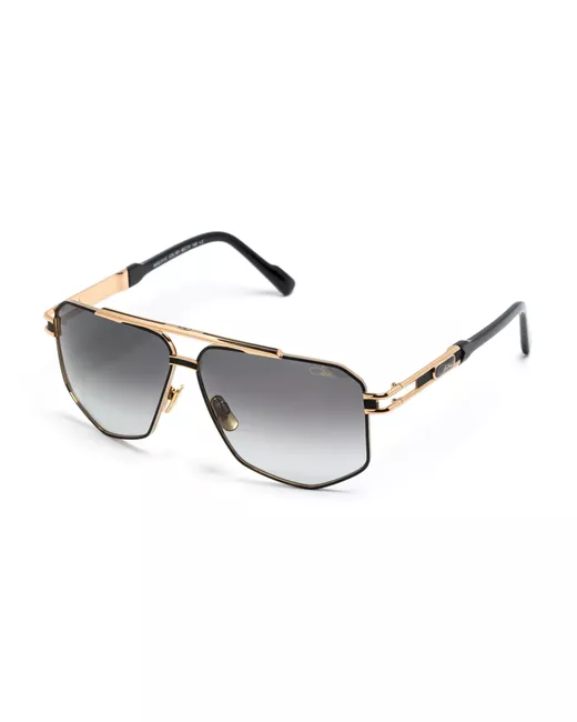 gold-tone/black acetate pilot frame grey tinted lenses double bridge nose pads logo-engraved arm sculpted arms and curved tips These glasses come with a protective case.