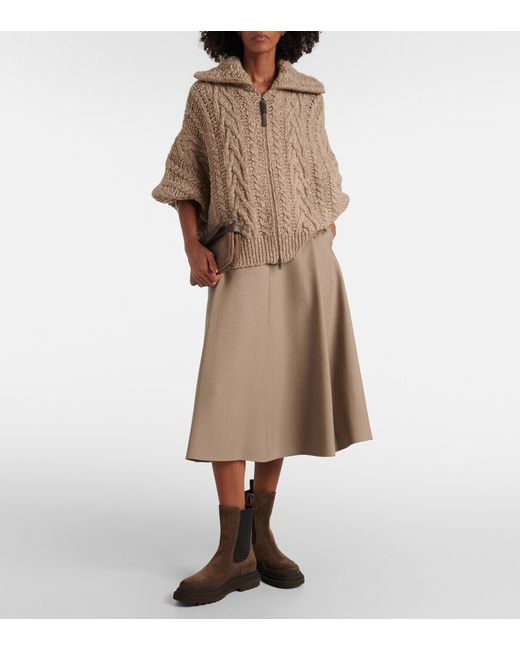 Material: 100% virgin wool. Care instructions: dry clean. Made in Italy. Designer color name: Greige. Lining: 65% acetate, 35% polyester. Closure: zipped side.