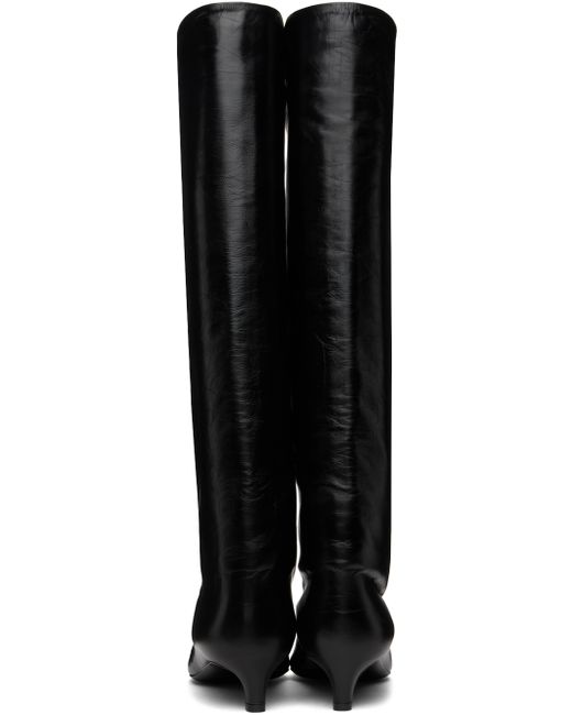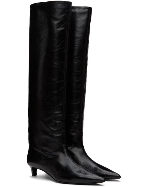 Knee-high crinkled calfskin boots in black. · Pointed toe · Buffed leather lining · Covered kitten heel with rubber injection · Leather sole · Heel: H1.25 Supplier color: Black