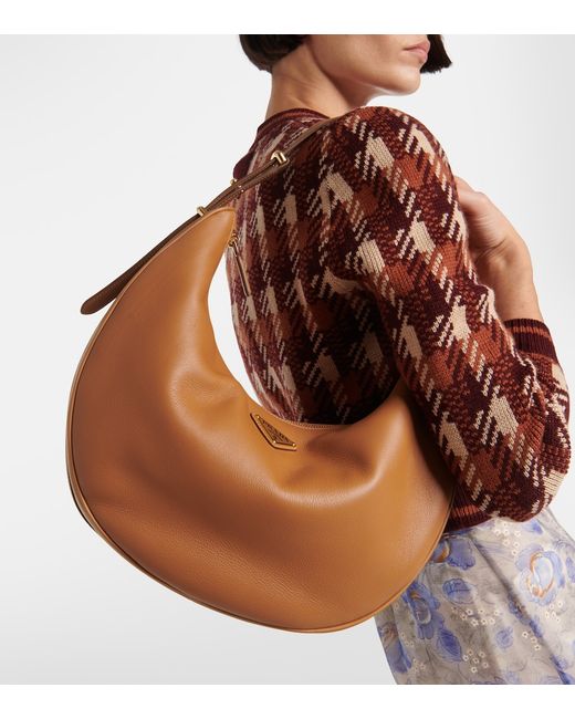 Material: leather. Lining: fabric. Made in Italy. Designer color name: Caramel. Closure: zipped top. Adjustable shoulder strap. Internal details: internal slot pocket. Includes: dust bag.