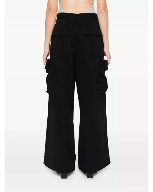 black lyocell blend logo embellishment pleat detailing belt loops front button and zip fastening drawstring waist wide leg two side inset pockets two side cargo pockets two rear flap pockets press-stud fastening cuffs