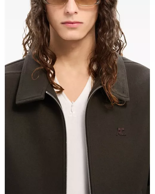brown wool stand-up collar long sleeves buttoned cuffs logo patch at the chest two side zip-fastening pockets rear elasticated hem front two-way zip fastening