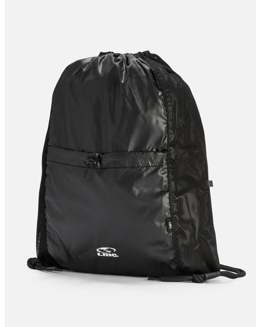 LMCMesh String Gym SackLMC oval globe logo printLMC label pointAdjustable pocket exteriorDrawstring closureColor: Black