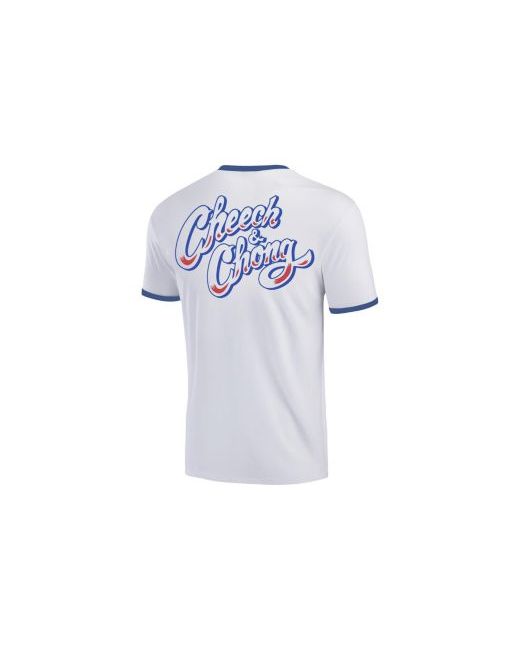 Make any look a home run with this Cheech Chong Los Angeles Baseball Ringer T-shirt. Crafted by Ripple Junction, it features eye-catching graphics of the iconic comedy duo and contrast details. Combine your love of Cheech Chong and America's pastime with this fun tee.