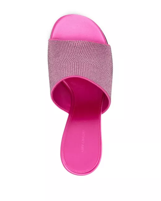 fuchsia pink calf leather crystal embellishment open toe slip-on style 70mm sculpted heel rubber sole