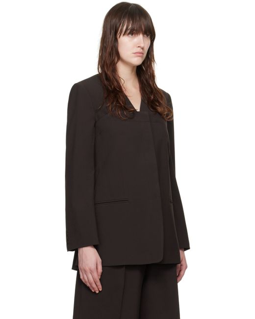 Stretch polyester- and viscose-blend barathea blazer. Detachable button panel for alternate styling. · V-neck · Concealed button closure · Welt pockets · Three-button surgeon's cuffs · Full cupro- and viscose-blend satin lining Supplier color: Umber