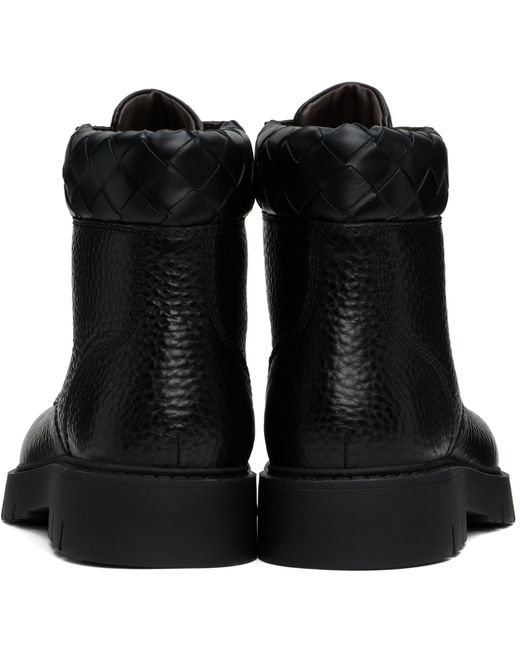 Ankle-high grained leather boots in black. · Lace-up closure · Logo embossed at tongue · Intrecciato-woven padded collar · Treaded rubber sole · Heel: H1.5 Supplier color: Black black