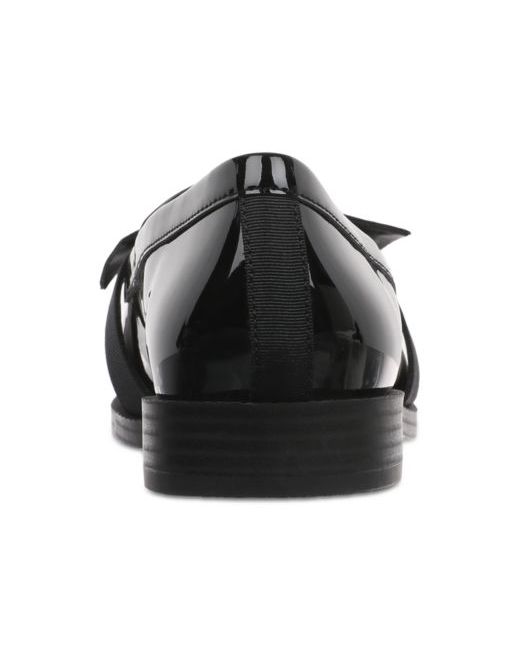 Patent gloss and knotted bows add sophisticated polish to a dressed up flat with the menswear-inspired Kasandra loafers by On 34th.