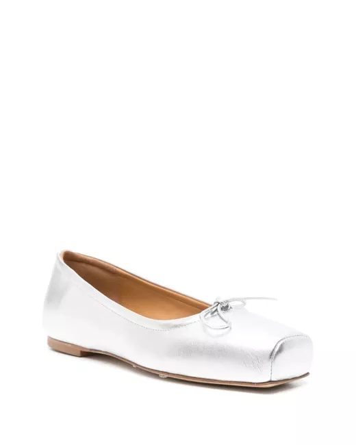 silver-tone calf leather laminated finish square toe bow detailing branded leather insole leather lining flat leather sole slip-on style