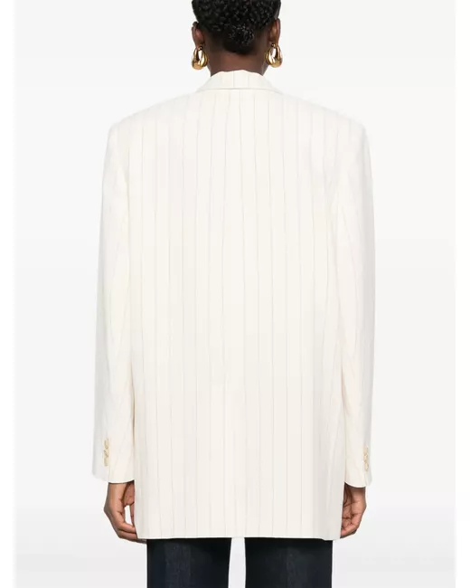 ecru red crepe texture vertical stripe pattern front button fastening notched lapels shoulder pads long sleeves buttoned cuffs chest welt pocket two front flap pockets button fastening central rear vent logo-embellished lining