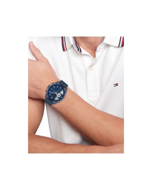 Introducing Tommy Hilfiger men's watch a modern classic that holds a timeless symbol of polished refinement, impeccable craftsmanship, and enduring style. At its heart lies a multi-layer textured sunray dial, meticulously crafted to perfection, with Cd-cut sub-eyes and applied indexes and Roman numerals. The watch has a multifunctional design, featuring weekday sub-eyes at 12 o'clock, 24-hour sub-eyes at 9 o'clock, and a date indicator at 6 o'clock. Elevate your ensemble and make a lasting impression. Sku 1710648