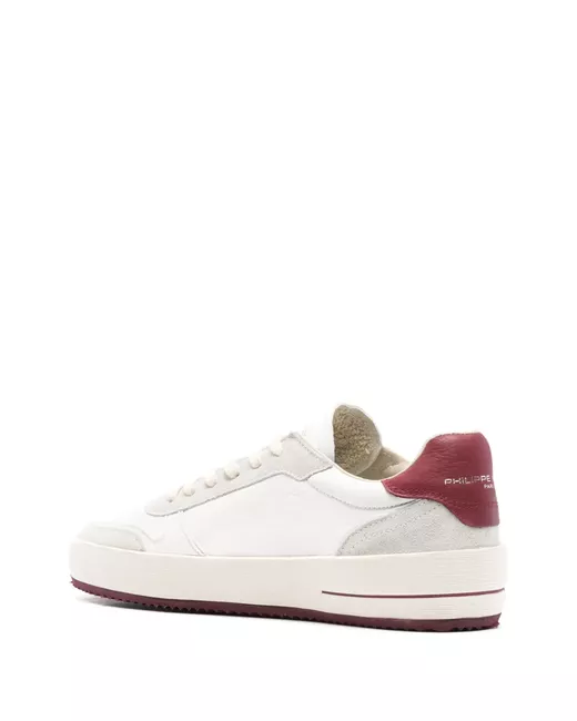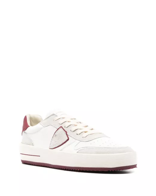 white/light grey leather panelled design suede panels round toe perforated toebox logo patch to the side logo patch at the tongue contrasting branded heel counter padded ankle removable branded leather insole flat rubber sole front lace-up fastening