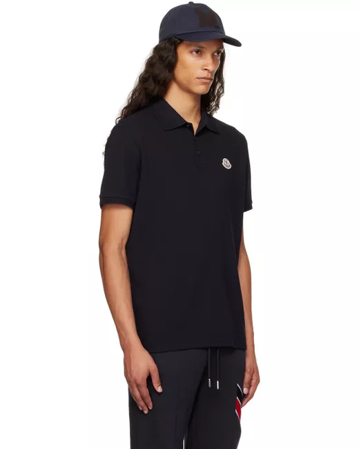 Cotton piqué polo. · Chevron detailing at rib knit spread collar and cuffs · Three-button placket · Tricolor felted logo patch at chest Supplier color: Navy