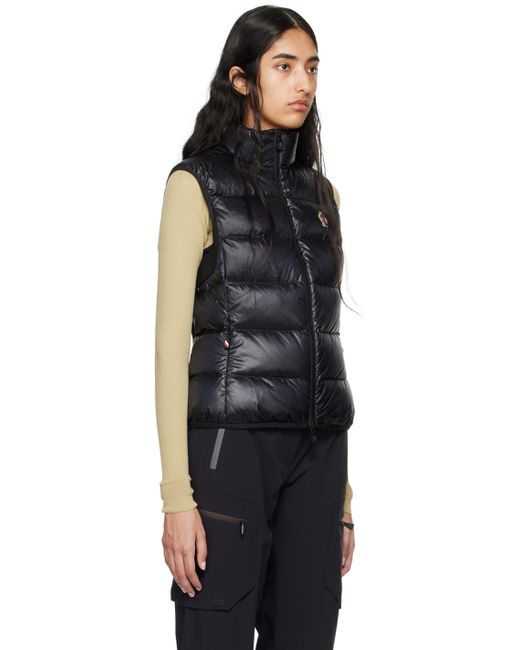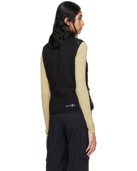 DIST-certified down-filled and quilted nylon ripstop and stretch nylon jersey vest. · Breathable, quick-drying, and moisture-wicking · Paneled construction · Stand collar · Zip closure · Embroidered logo patch at chest · Zip pockets · Elasticized hem and armscyes · Text printed at back · Partial mesh lining Part of the Day-Namic collection. Supplier color: Black Fill: 90% goose down, 10% feather.