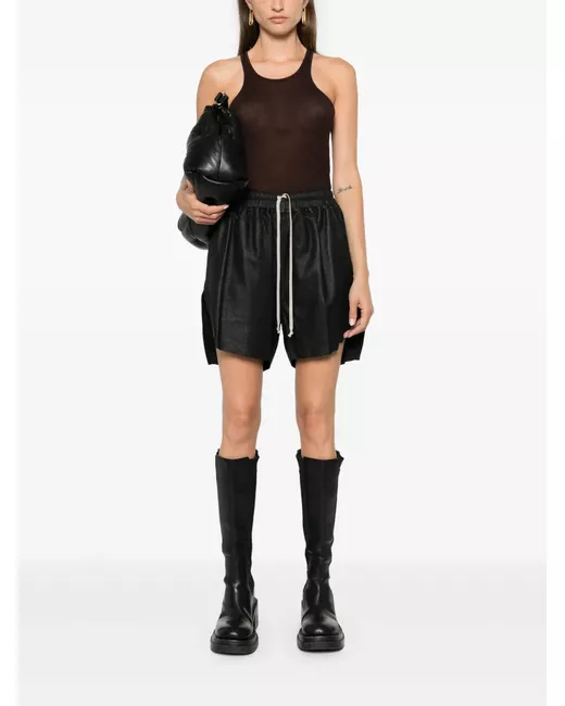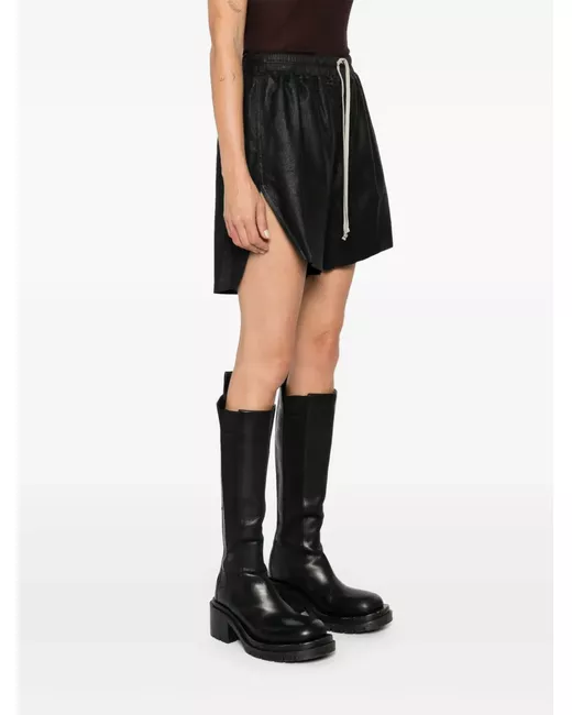 black lambskin grained texture elasticated drawstring waistband side slits partial lining thigh-length