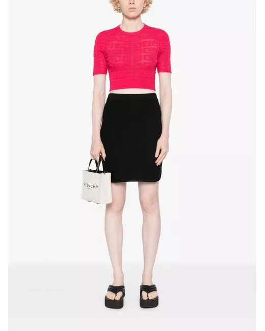 black knitted construction signature 4G motif monogram jacquard elasticated waistband concealed rear hook and zip fastening unlined ribbed hem thigh-length