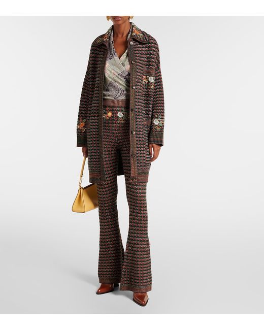 Material: 40% wool, 40% acrylic, 20% polyester. Care instructions: dry clean. Made in Italy. Designer color name: Multicolour On White Base. Embroidery: 100% polyester. Elasticated waistband.