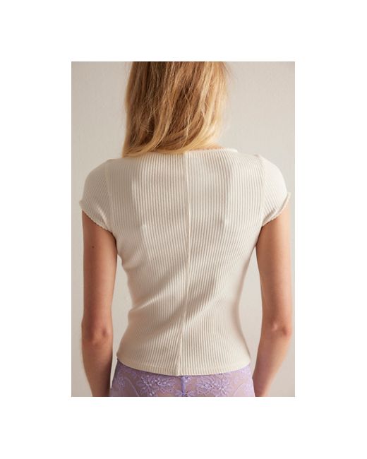 Cute and classic, this shrunken cardi is featured in a hugging ribbed fabrication with short capped sleeves and buttons all the way up the front. **Fit:** Form-fitting, full length **Features:** Ribbed swit fabrication, crew neckline, button-front closure, capped sleeves, picot trim **Why We Most Wanted Cardi by Intimately at Free People in Ivory, Size: XS