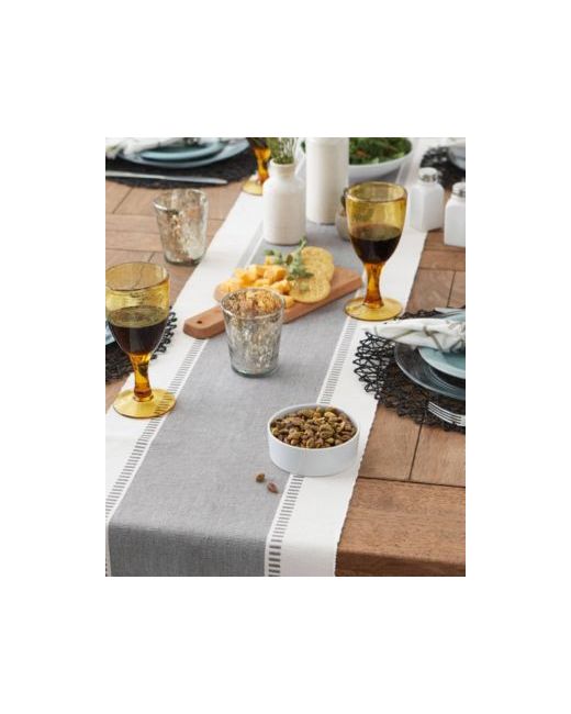 Our meticulously designed Dobby Stripe Ribbed Table Runner is made of 100-percent cotton fabric, measuring 13x108 inches with approximately 2.75-inch knotted macrame fringe on each end. Perfect for tables seating 8-10 people, this runner adds a touch of elegance to any setting. This runner is easy to care for â simply machine wash in cold water separately on a gentle cycle, lay flat to dry, and iron on low as needed. Please note that cotton may shrink. Our colorfast ribbed dobby stripe table runner allows your dinnerware to stand out, making a statement. Available in a variety of colors, this table runner is easy to mix and match to suit your decor. A classic staple for any kind of entertaining, our cotton table runner adds a rich, textured, and finished look to your dining, foyer, or coffee table, brightening up any space with its timeless charm. Love your table decor with this practical and stylish addition to your home.