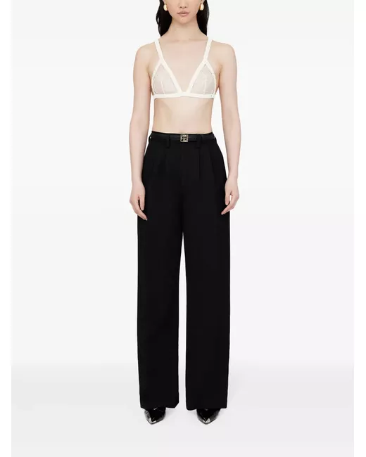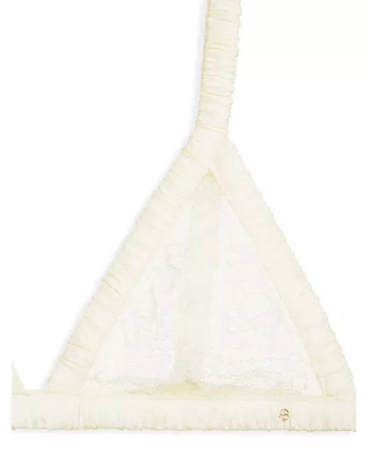 ivory white stretch-design floral-lace detailing gold-tone logo plaque triangle cup rear hook and eye fastening adjustable shoulder straps