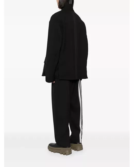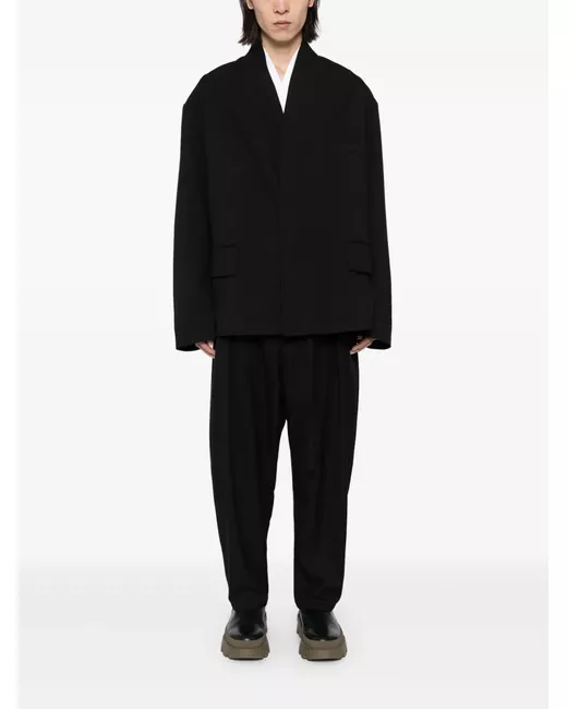 black virgin wool V-neck concealed front button fastening long sleeves front patch pocket straight hem full lining