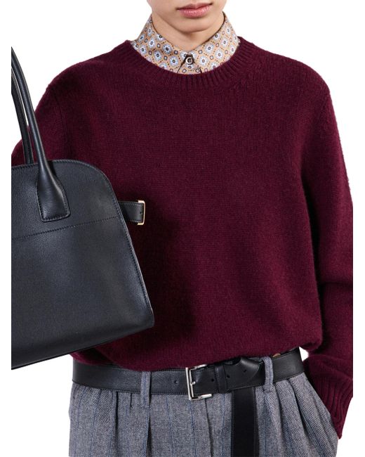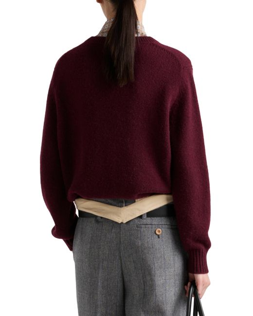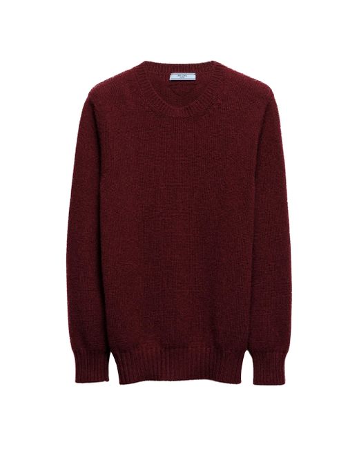 Clean lines with a minimalist cut reinterpret the sleek design of this long-sleeved sweater made of warm wool and cashmere. A wardrobe classic is reinterpreted according to a contemporary language and transformed into a garment featured in unexpected combinations. The soft, relaxed menswear-inspired silhouette is embellished with the triangle logo on the back that completes the garment with an iconic touch. Long sleeves Plain knit Menswear fit Ribbed knit crew neck Regular shoulder Ribbed knit cuffs and hem Triangle logo Imported SIZE: 64 cm / 25.1'' H. Lsd Rtw - Prada Rtw > Prada > Saks Fifth Avenue > Barneys. Prada. Color: Dark Red. Size: 0.