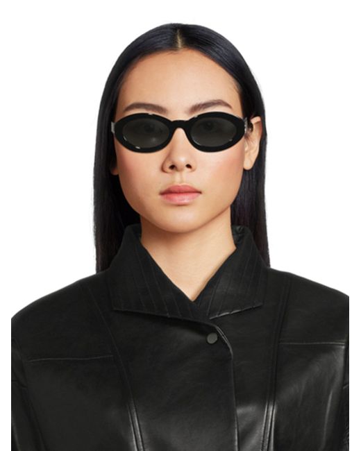 From the Monogram Hinge Collection. Logo hardware detailing at the corners accent these Saint Laurent oval sunglasses, complete with thick frames and solid lenses. 100% UV protection Solid lenses Includes case and cleaning cloth Acetate/nylon Made in Italy SIZE 52mm lens width 22mm bridge width 140mm temple length Please note: Lens replacement is optional. ABOUT THE BRAND Founded in 1961, Yves Saint Laurent's groundbreaking styles have become iconic cultural and artistic references, and its founder, the couturier Yves Saint Laurent, secured a reputation as one of the twentieth century's foremost designers. Part of the Kering Group, the House kept true to its identity of absolute modernity and fashion authority. Under the creative direction of Anthony Vaccarello, appointed in April 2016, the House offers a broad range of women's and men's ready-to-wear products, leather goods, shoes, jewelry and eyewear. It is also a major force in fragrances and cosmetics. Soft Accessories - Sunglasses > Saint Laurent > Saks Fifth Avenue > Barneys. Saint Laurent. Color: Black Dark Grey.