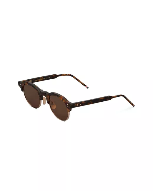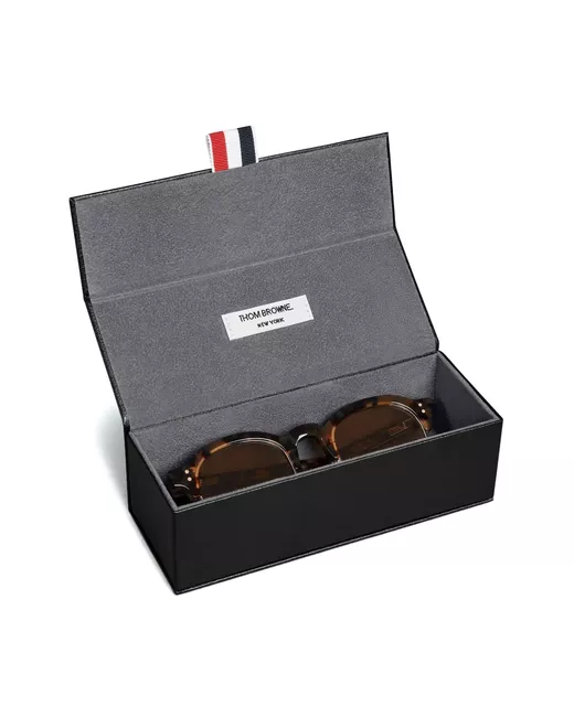 brown acetate/titanium tortoiseshell effect oval frame nose pads tinted lenses straight arms curved tips signature 4-Bar stripe These glasses come with a protective case.