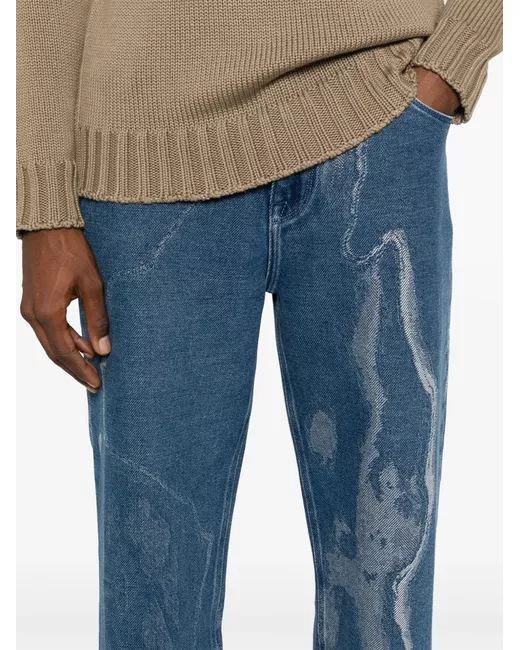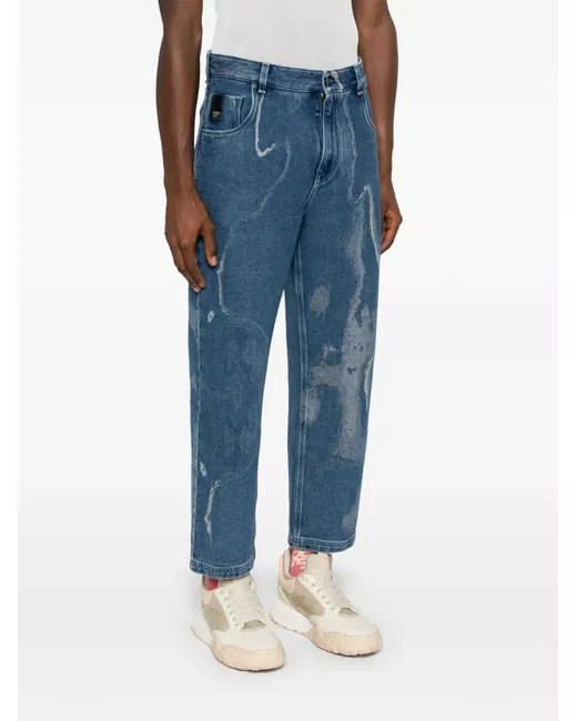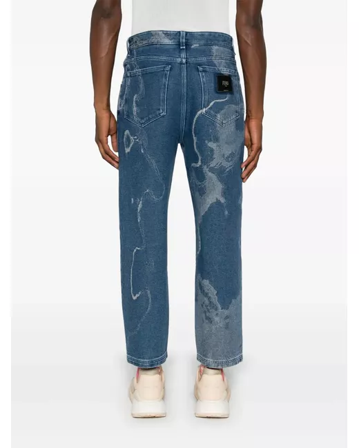 medium blue cotton blend denim patterned jacquard belt loops classic five pockets logo patch to the front logo patch to the rear cropped front button and zip fastening