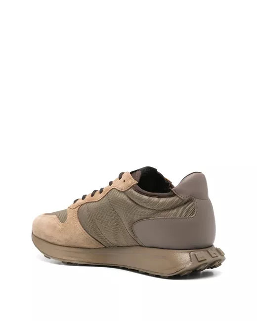 brown suede mesh panelling round toe logo patch at the tongue flocked logo branded insole memory foam insole rubber sole front lace-up fastening This piece comes complete with a protective dust bag.