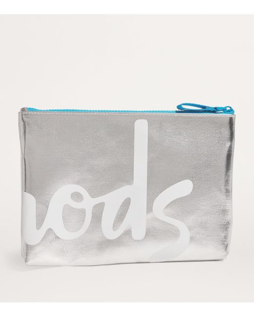 Whether you desire a place to store miscellaneous items or stash away monetary essentials, a Harrods pouch is completely versatile. This rendition sees the historic logo sit against a metallic backdrop for a playful spin on tradition.