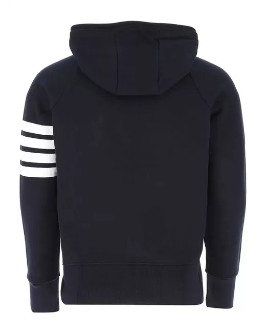 navy blue cotton navy blue cotton signature 4-Bar stripe logo tag drawstring hood front zip fastening two diagonal pockets to the sides long sleeves straight hem