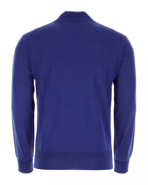 electric blue virgin wool fine knit ribbed trim high neck long sleeves