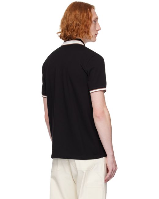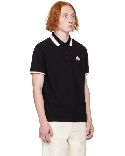 Cotton piqué polo. · Striped rib knit spread collar and cuffs · Two-button placket · Felted logo patch at chest Supplier color: Black
