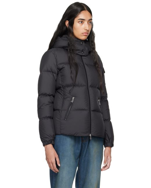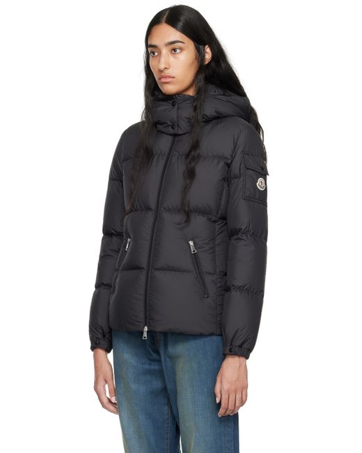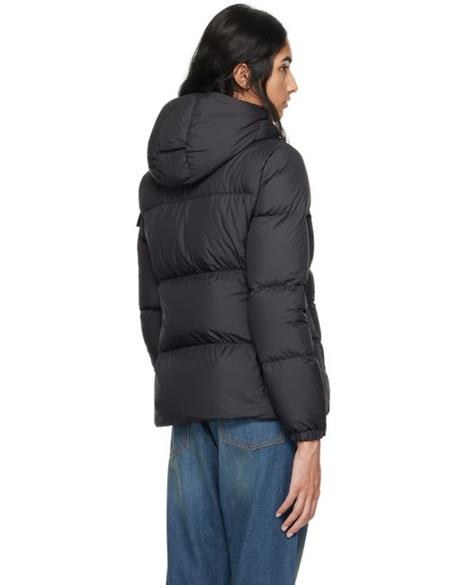 Down-filled quilted recycled polyester taffeta jacket. Water-repellent. · Bungee-style drawstring and press-stud fastening at detachable hood · Stand collar · Two-way zip closure · Zip pockets · Patch pocket and tricolor felted logo patch at sleeve · Full recycled polyester taffeta lining Supplier color: Black Fill: 90% down, 10% feather.