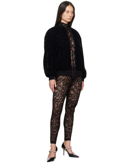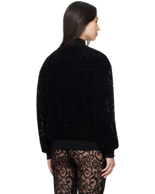Semi-sheer cotton-blend devoré velvet and lace bomber jacket. · Rib knit stand collar, hem, and cuffs · Zip closure · Zip pockets · Full tulle lining Supplier color: Black