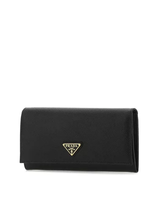 black leather/metal enamel triangle logo foldover top press-stud fastening partitioned compartment internal zip-fastening pocket internal card slots rear zip fastening